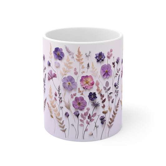 Purple Floral Ceramic Mug 11oz